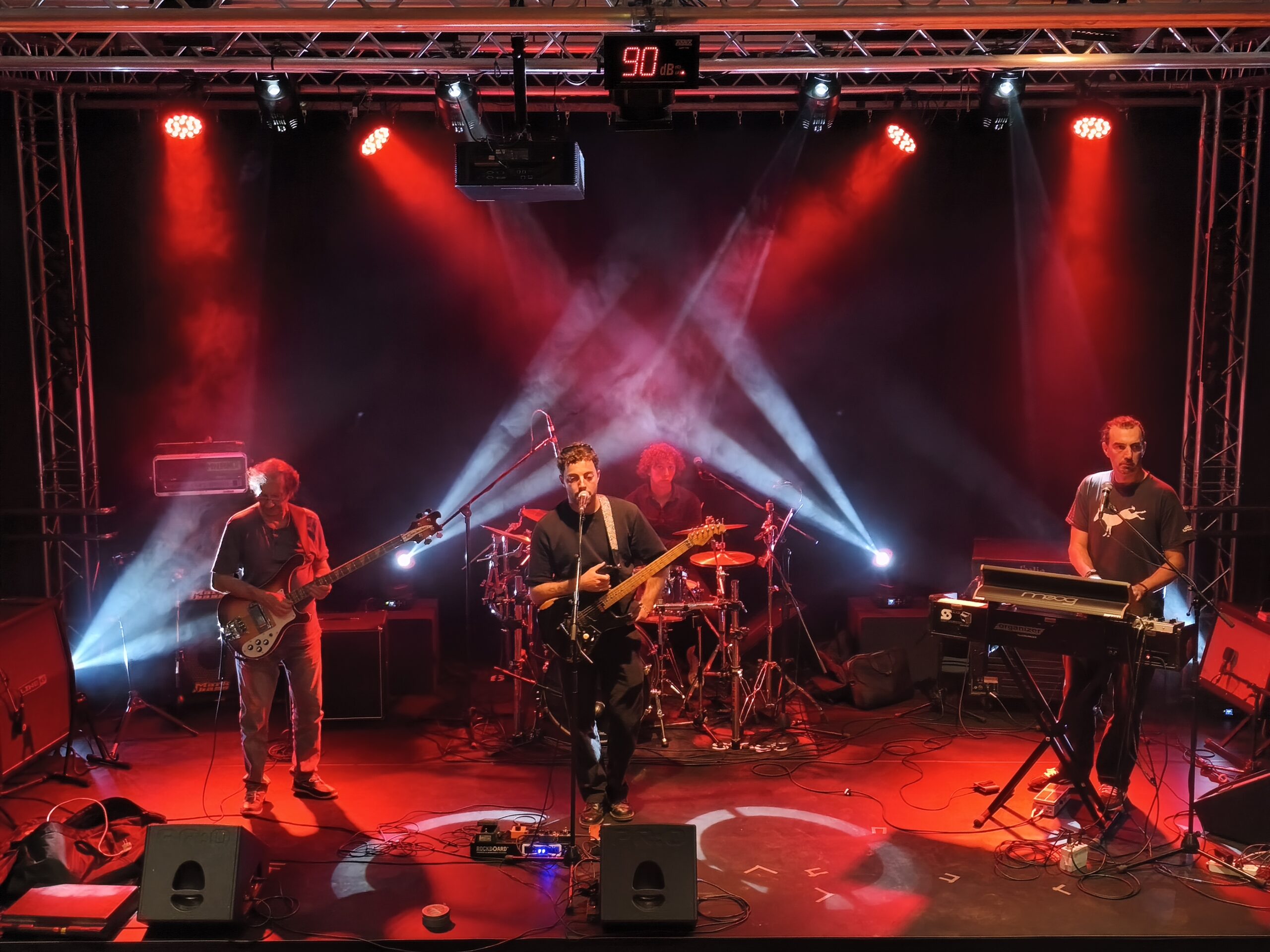 A la base du carré, Corentin, le fringant capitaine est guitariste, auteur, compositeur et chanteur. Côté rythmique, à la batterie Pierre The Beast, connu et reconnu pour avoir baladé ses baguettes dans les constellations Rock et Heavy Metal. A la basse, Master Steeve, lui et sa Rickenbaker ont sévi autour du rock progressif. Enfin Rage au claviers, un Moog sous la main gauche, un orgue sous la main droite… Adepte des voyages spatio-temporels vers le garage rock psychédélique ! Voilà pour boucler la quadrature du cercle !