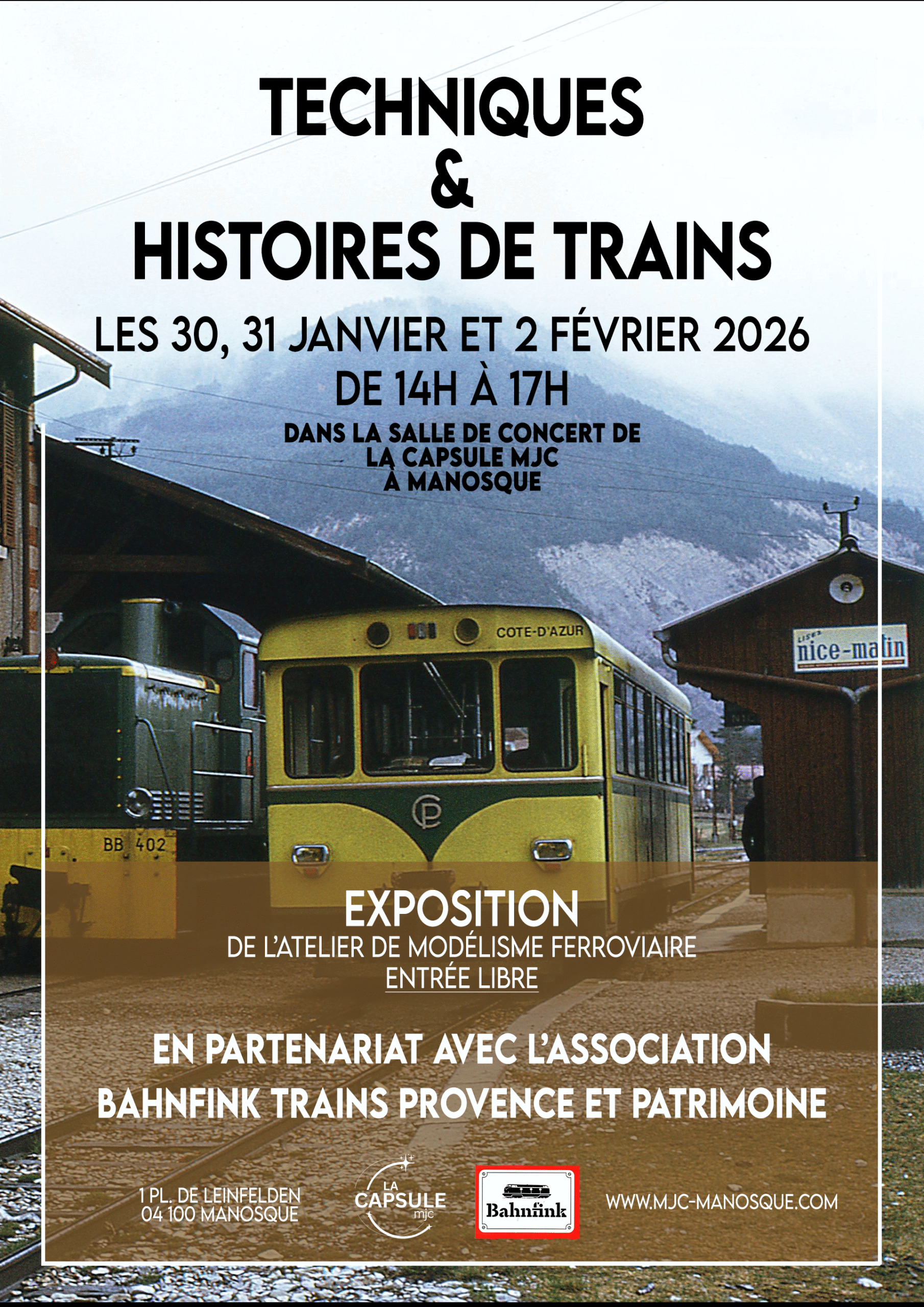 30, 31, JANVIER ET 2 FEVRIER – La Capsule MJC accueille l’exposition Techniques et Histoires de Trains.